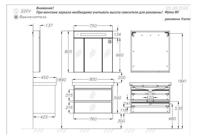 Тумба OPADIRIS Фреш 80, белый/белое стекло, вар. 2 (под раковину CeraStyle FRAME 80)
