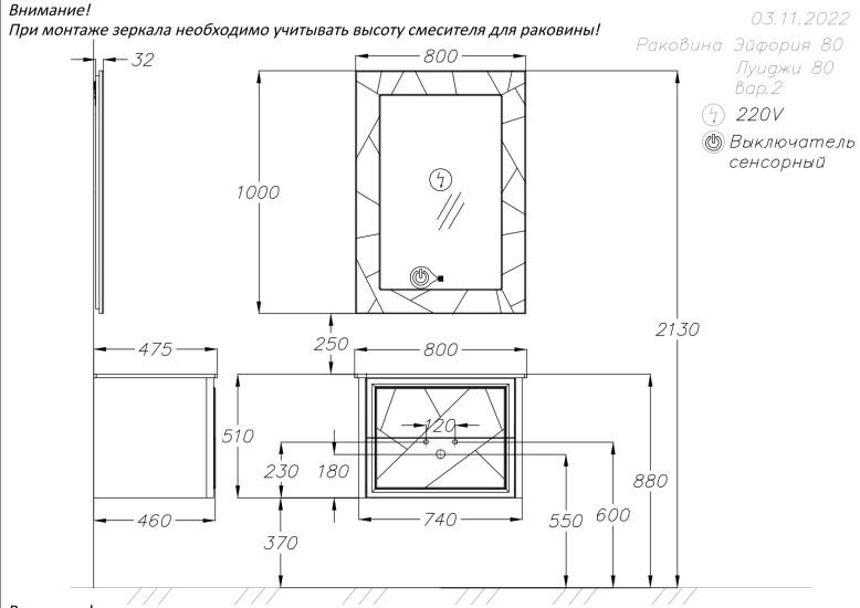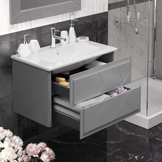 Тумба OPADIRIS Луиджи 80, серый матовый, подвесная, вар. 2 (под раковину Dreja Эйфория 80)