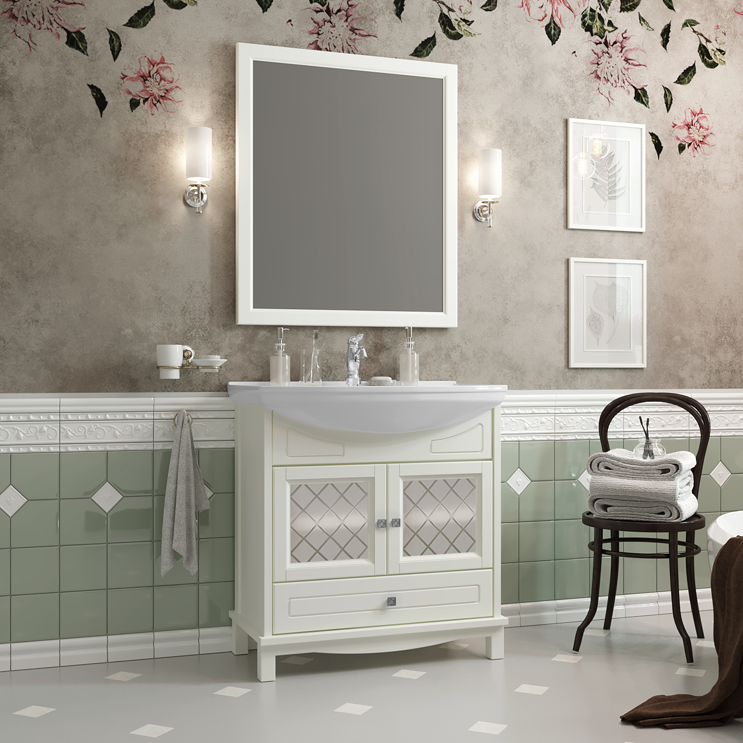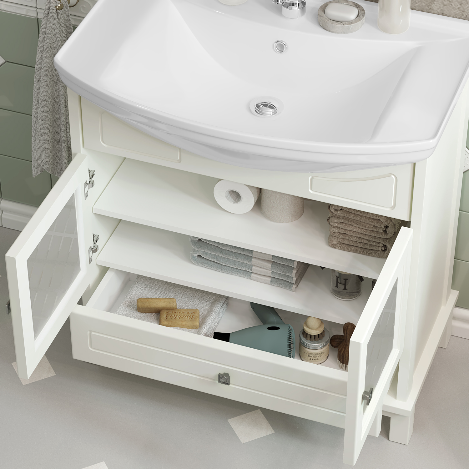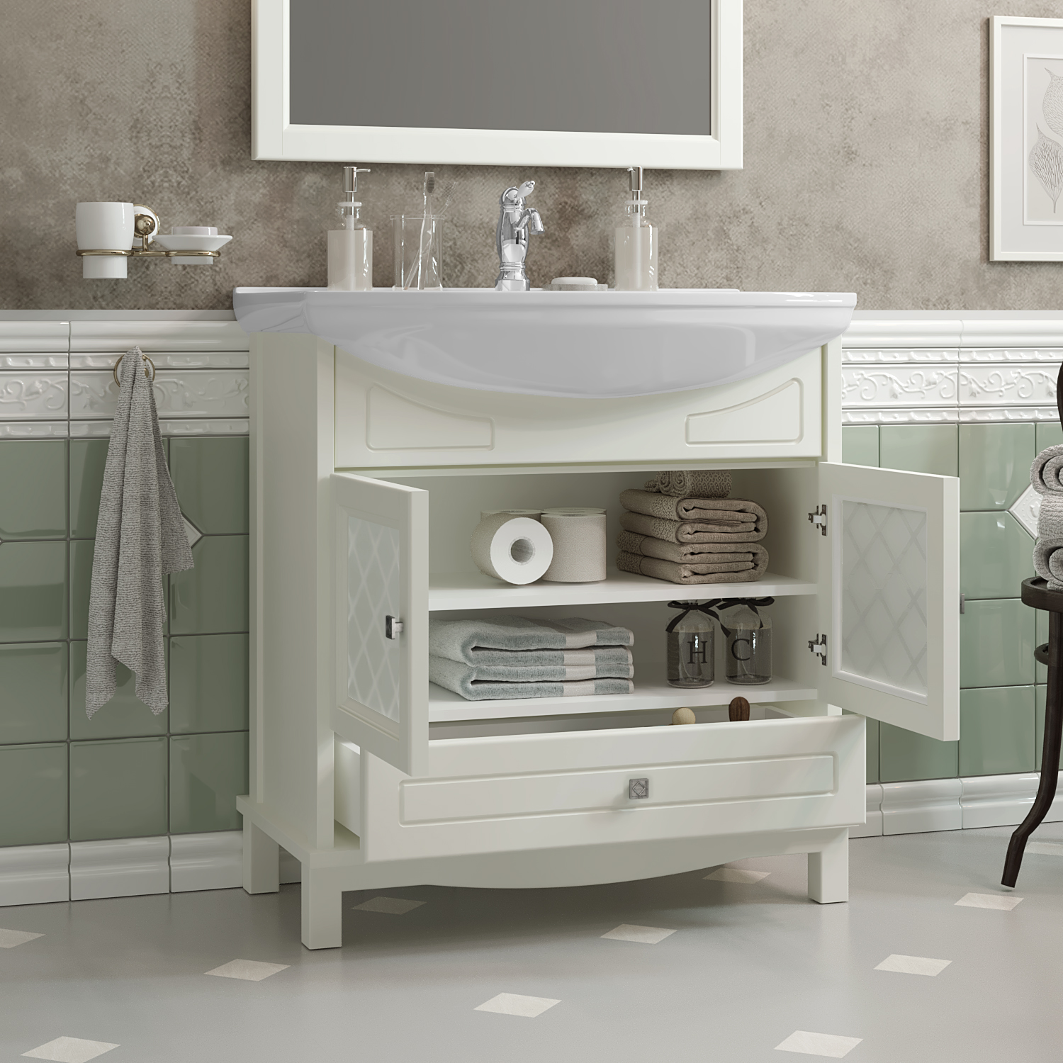 Тумба OPADIRIS Омега 75, слоновая кость (под раковину Kirovit Стиль 75)