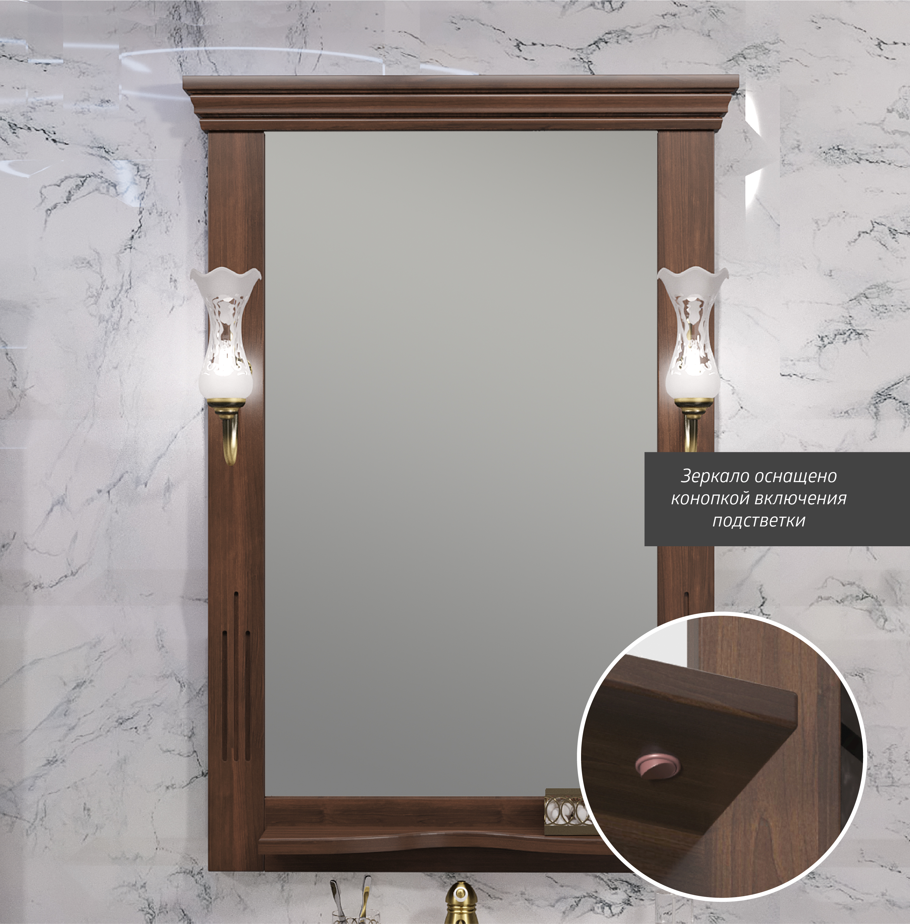 Зеркало OPADIRIS Риспекто 65, орех антикварный (нагал), с выключателем