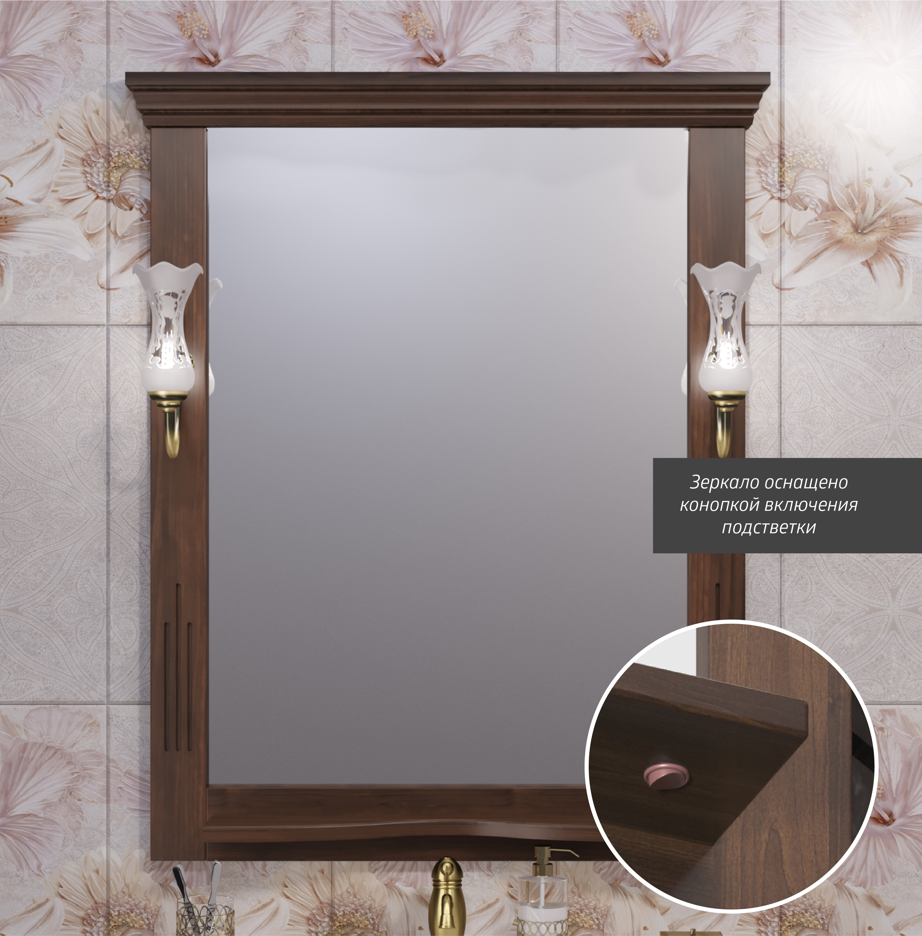Зеркало OPADIRIS Риспекто 80, орех антикварный (нагал), с выключателем