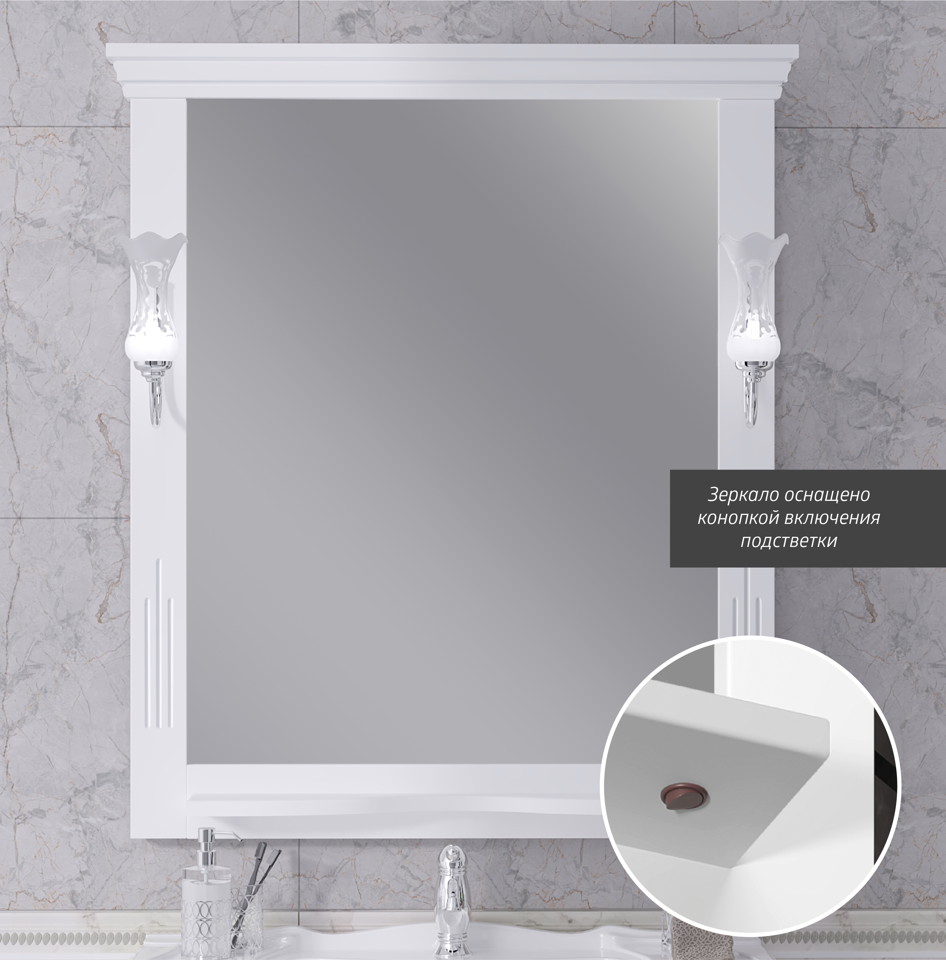 Зеркало OPADIRIS Риспекто 85, белый матовый, с выключателем
