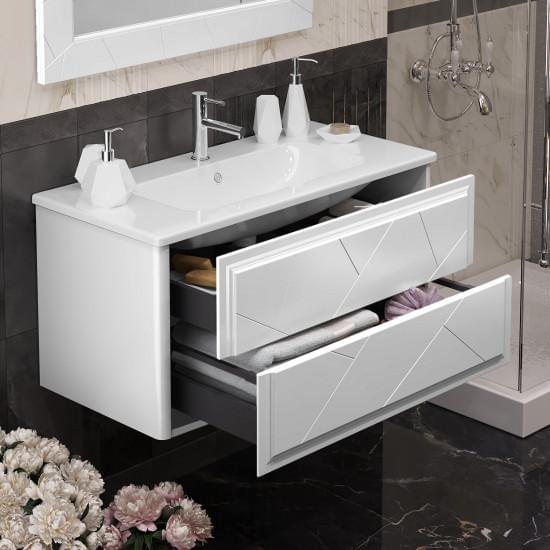 Тумба OPADIRIS Луиджи 100, белый матовый, подвесная, вар. 2 (под раковину Dreja Эйфория 100)